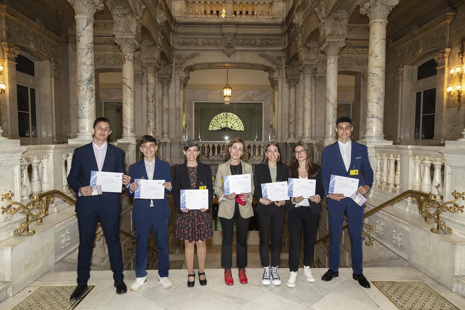 El profesor coordinador y cada uno de los alumnos del equipo ganador han recibido un diploma y una tarjeta regalo de 600 euros. Los integrantes del primer equipo finalista han obtenido también diploma y una tarjeta regalo de 300 euros. El segundo equipo finalista ha sido agraciado con diploma y una tarjeta regalo por valor de 200 euros. Además, el equipo ganador, invitado por el Banco Central Europeo, viajará a Fráncfort el próximo 30 de mayo para reunirse con el resto de equipos ganadores de los países participantes en un programa que incluirá un encuentro, el 31 de mayo, con Christine Lagarde,presidenta del Banco Central Europeo.
